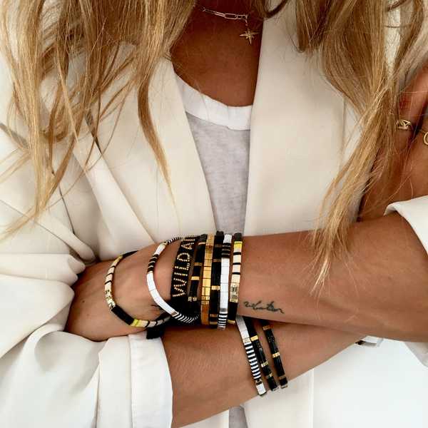 With our handmade stretch elastic beaded bracelets. made with glass and stainless steel beads. Salt and freshwater proof.